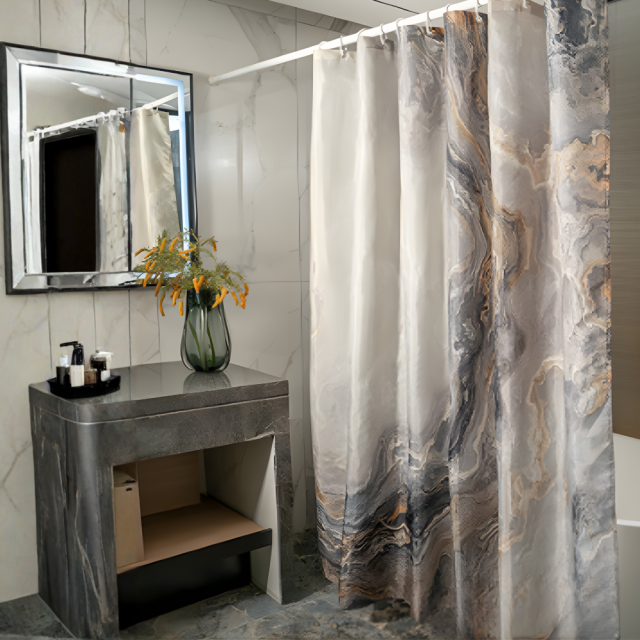 Шторка для ванной и душа размером 180×180 см изготовлена из прочного и качественного материала 100% полиэстер плотностью 90 GSM. Ткань отличается водоотталкивающими свойствами, быстро сохнет и устойчива к плесени. Шторка оснащена 12 люверсами из нержавеющей стали и комплектуется 12 пластиковыми крючками (ПВХ) для удобного крепления. Идеально подходит для душевой кабины или ванной комнаты, придавая интерьеру аккуратный и стильный вид. Характеристики: Материал: 100% полиэстер (плотность 90 GSM) Размер: 180×180 см Водонепроницаемая и быстросохнущая 12 люверсов из нержавеющей стали В комплекте: 12 пластиковых крючков (ПВХ) Тип: шторка для ванной / душа Принт: мраморное-золото Уход: машинная стирка при деликатном режиме