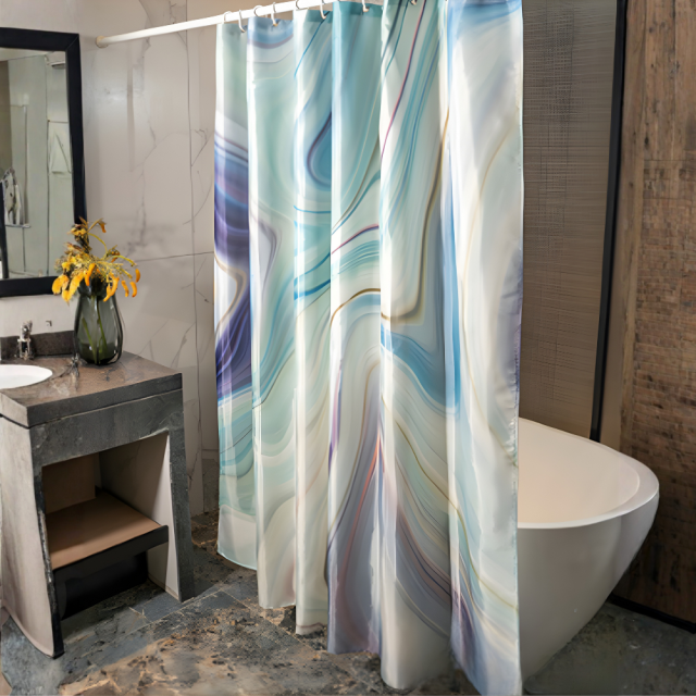 Шторка для ванной и душа размером 180×180 см изготовлена из прочного и качественного материала 100% полиэстер плотностью 90 GSM. Ткань отличается водоотталкивающими свойствами, быстро сохнет и устойчива к плесени. Шторка оснащена 12 люверсами из нержавеющей стали и комплектуется 12 пластиковыми крючками (ПВХ) для удобного крепления. Идеально подходит для душевой кабины или ванной комнаты, придавая интерьеру аккуратный и стильный вид. Характеристики: Материал: 100% полиэстер (плотность 90 GSM) Размер: 180×180 см Водонепроницаемая и быстросохнущая 12 люверсов из нержавеющей стали В комплекте: 12 пластиковых крючков (ПВХ) Тип: шторка для ванной / душа Принт: мраморно-голубой Уход: машинная стирка при деликатном режиме