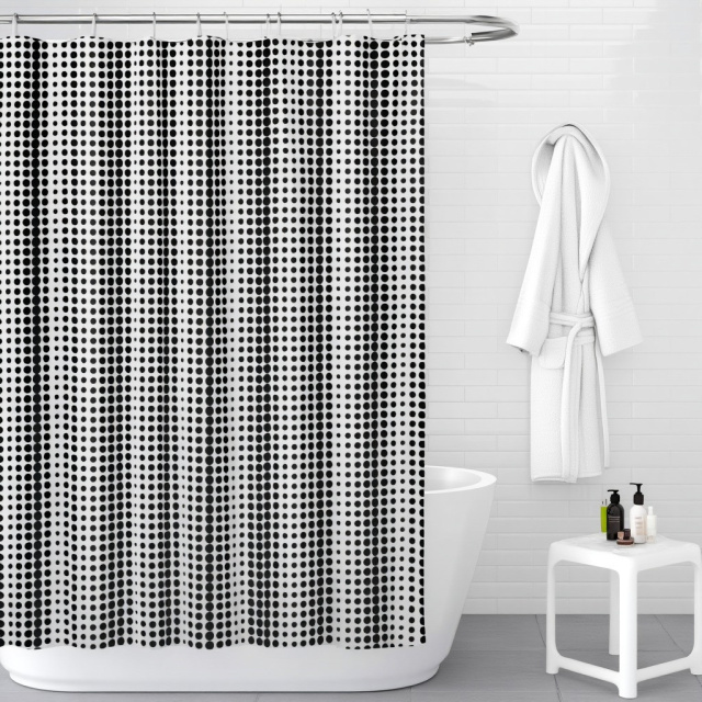 Шторка для ванной и душа размером 180×180 см изготовлена из прочного и качественного материала 100% полиэстер плотностью 90 GSM. Ткань отличается водоотталкивающими свойствами, быстро сохнет и устойчива к плесени. Шторка оснащена 12 люверсами из нержавеющей стали и комплектуется 12 пластиковыми крючками (ПВХ) для удобного крепления. Идеально подходит для душевой кабины или ванной комнаты, придавая интерьеру аккуратный и стильный вид. Характеристики: Материал: 100% полиэстер (плотность 90 GSM) Размер: 180×180 см Водонепроницаемая и быстросохнущая 12 люверсов из нержавеющей стали В комплекте: 12 пластиковых крючков (ПВХ) Тип: шторка для ванной / душа Цвет:белая с принтом в черный "горошек" Уход: машинная стирка при деликатном режиме