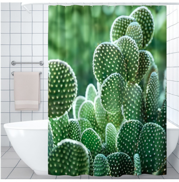 Шторка для ванной и душа с кольцами 180x180 см водоотталкивающая, шторка для ванной и душевой с крючками ,принт кактусы