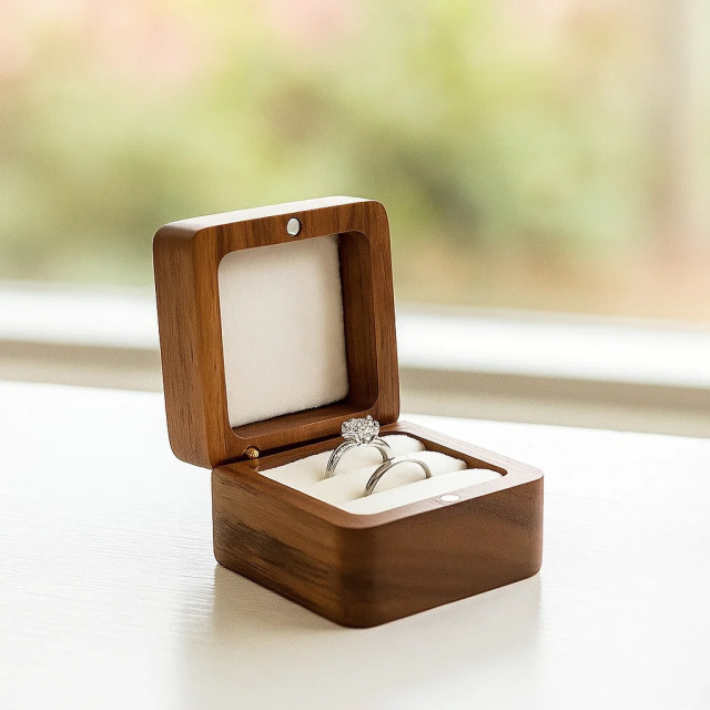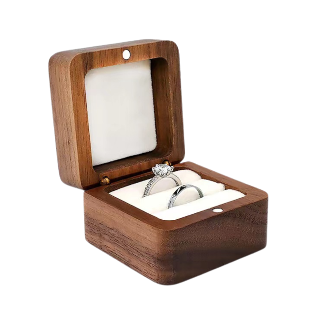 Элегантная шкатулка для колец выполнена из натурального дерева и дополнена мягкой бархатной отделкой внутри. Внутри предусмотрено два ряда для колец, что позволяет разместить обручальные, помолвочные или подарочные кольца парой. Магнитный замок надежно фиксирует крышку, сохраняя украшения в безопасности. Компактные размеры 5.5×5.5×3.5 см делают её удобной для хранения и дарения колец. Подойдет как стильный футляр для подарка или оригинальная коробочка для презентации украшений. Характеристики: Материал: дерево Внутренняя отделка: бархат Тип замка: магнитный Размеры: 5.5×5.5×3.5 см Количество рядов: 2 Назначение: хранение и презентация колец, украшений