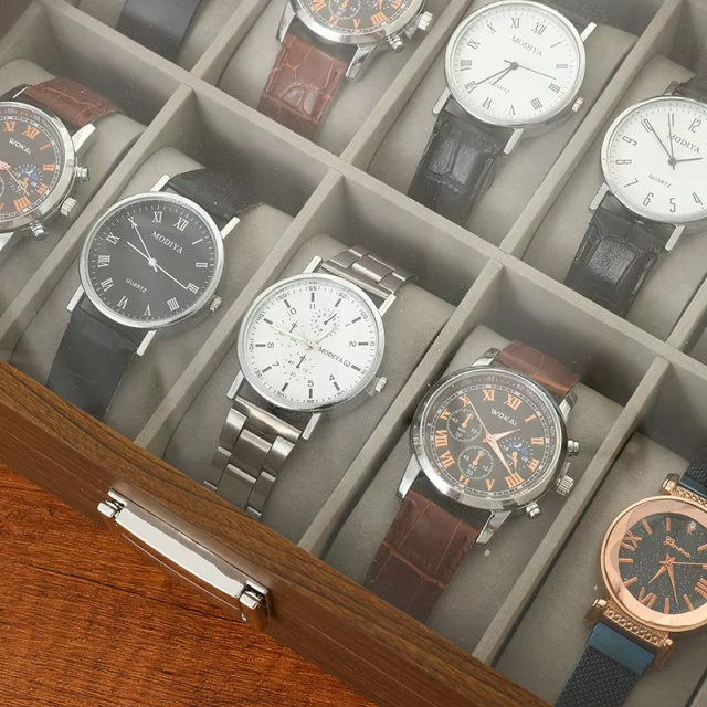 Шкатулка для хранения часов органайзер на 12 отделений деревянная с прозрачным окном,футляр органайзер для наручных часов