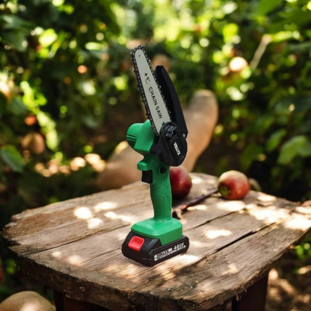 деревьев и удаления сухих веток на приусадебном участке. Минипилка работает от