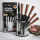 Комплект дополнен подставкой, которая позволяет компактно хранить ножи, поддерживать порядок на рабочей поверхности и обеспечивает быстрый доступ к каждому инструменту.