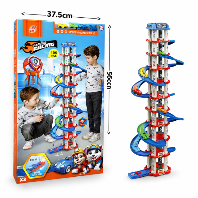 Children’s Rail Car MH2006 – это многоуровневый игровой автотрек-паркинг, состоящий из 105 элементов и позволяющий собрать высокую вертикальную трассу с парковочными уровнями и спусками.