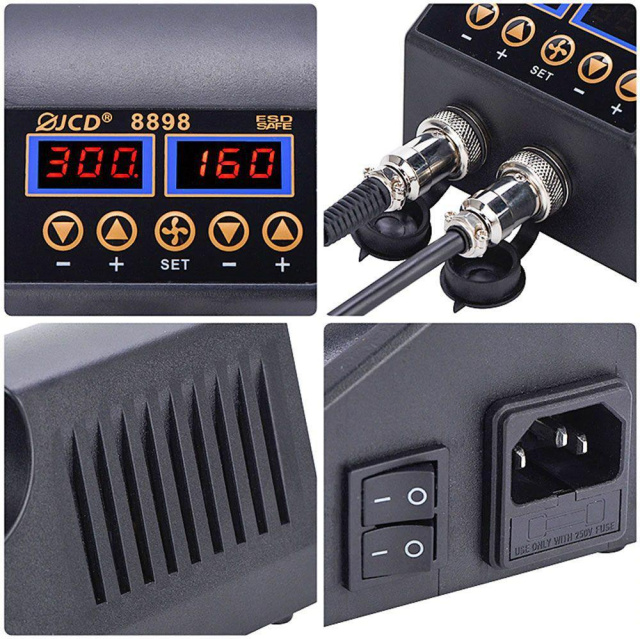 Паяльная станция JCD 8898 2в1, 750 Вт, с термофеном и паяльником 80 Вт, цифровая регулировка температуры, 3 насадки