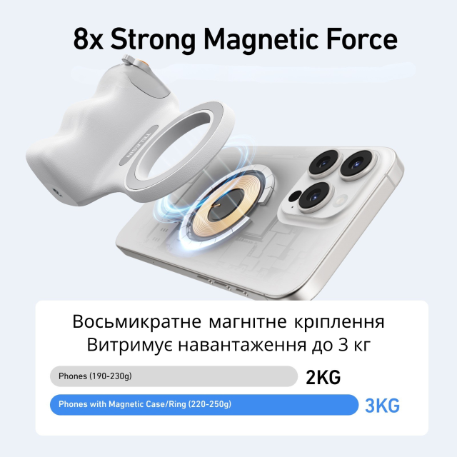 Усиленное магнитное крепление — выдерживает вес до 2–3 кг