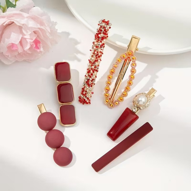 Набор заколок для волос 6 шт для женщин,бижутерия золотистые зажим заколки для причесок с стразами и жемчугом женские,красный