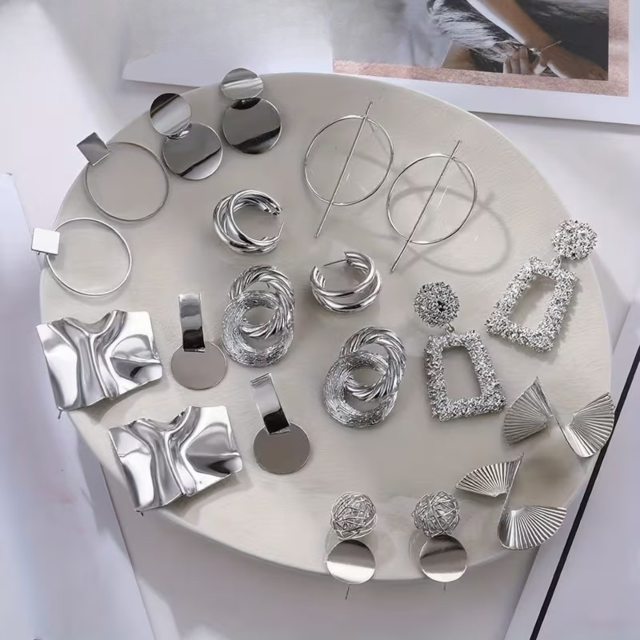 Стильный набор женских серёжек в современном стиле — отличное решение для создания повседневных и вечерних образов. В комплект входит 5 пар (10 штук) серёжек с разными геометрическими дизайнами: кольца, подвески, текстурированные и гладкие модели. Универсальный дизайн позволяет легко сочетать аксессуары с деловой, кэжуал и праздничной одеждой. Серёжки изготовлены из сплава цинка, отличаются прочностью, легкостью и устойчивостью к износу. Подходят для ежедневной носки и особых случаев. Характеристики: Тип: набор серёжек Количество: 5 пар (10 штук) Цвет: серебристый Материал: сплав цинка Стиль: геометрический, минимализм Назначение: повседневный и вечерний образ