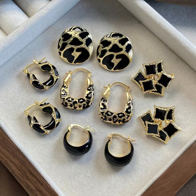 Серьги набор 5 пар в различных дизайнах с эмалью золотистые,женская бижутерия серьги комплект из цинкового сплава