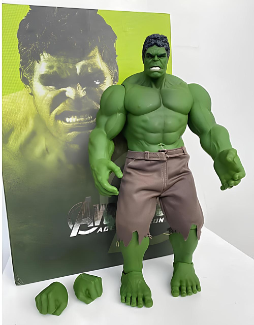 Огромные фигурки Халка вселенной Мстителей RESTEQ! В комплект также едет пара сменных кистей. У статуэтки 10 точек артикуляции. Материал - АБС-пластик, ткань. Халк в высоту - 42 см! Ширина - 24 см. Вес - 540 г.