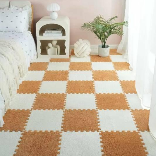 Плюшевый пол-пазл — это модульные напольные плитки из EVA-пены с мягким текстильным покрытием. Каждый элемент (30 x 30 см) оснащен замковыми соединениями, что позволяет легко складывать их в большой коврик любой формы. Плюшевая поверхность делает коврик комфортным, теплым и мягким для пола. Идеально подходит для детских комнат, игровых зон, мест отдыха, теплых и мягких ковриков на пол. Материал основы: EVA пена — термопластичный полимер, обеспечивающий гибкость, теплоизоляционные и амортизационные свойства. Текстильный слой: плюшевый ворс из полиэфирных волокон, устойчив к износу, не мнется и быстро высыхает. Уход прост: покрытие легко моется и сохраняет мягкость, имеет антискользящий эффект благодаря текстурированной основе и антистатическим добавкам. Характеристики: Размеры: 30 x 30 см Толщина: основной слой 1 см + плюшевый ворс 0.6 см Вес: 150 г / шт. Простая сборка и возможность комбинировать разные цвета