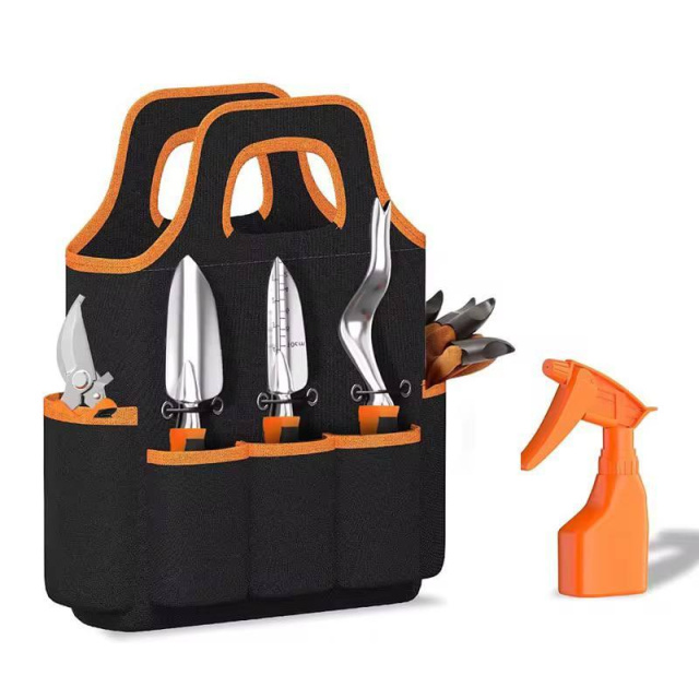 Этот садовый набор – идеальный помощник для ухода за растениями и огородом. В комплект входит удобная сумка-органайзер (29,5×24×12 см), которая позволяет удобно хранить и переносить инструменты. Основные рабочие инструменты включают две лопатки (обычная и с измерительной шкалой) длиной 29,5 см и 28 см, трехзубсадовые вилы (28 см), трехзубые грабли (28 см), пропольную вилку (29 см) и секатор (19 см). Все инструменты изготовлены из прочной нержавеющей стали с удобными эргономичными ручками, обеспечивающими комфорт во время работы.