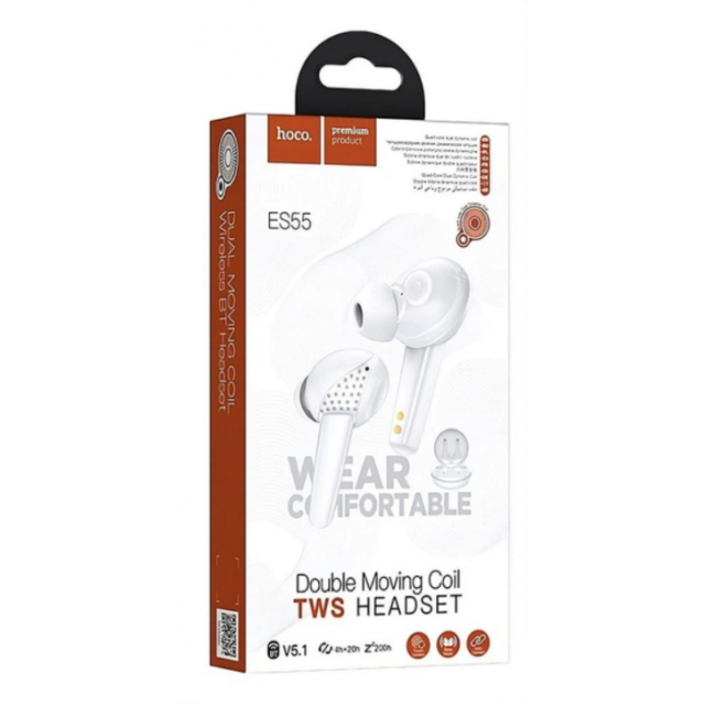Наушники Bluetooth HOCO ES55 Songful BT5.1 удобны в повседневном использовании и радуют отличным звучанием музыкальных композиций. Идеально подходят для использования на улице, в транспорте или во время тренировок. Благодаря встроенному микрофону могут использоваться не только для прослушивания музыки, но и для приема звонков и разговора. Со смартфоном соединяются с помощью Bluetooth. Оснащены зарядным кейсом и работают в радиусе 10 метров от телефона. Совместимы с операционной системой iOS и со смартфонами на базе Android.Характеристики Емкость батареи зарядного чехла: 200 mAh; Время работы: До 4 часов Время зарядки: 1.5 часа Сенсорные Интерфейс подключения: Bluetooth V5.1 Емкость аккумулятора наушников: 25 mAh Частотный диапазон: 20-20000 Гц Чувствительность: 98 дБ Сопротивление наушников: 32 Ом Встроенный микрофон Динамик: 6 мм х 4 Цвет белый