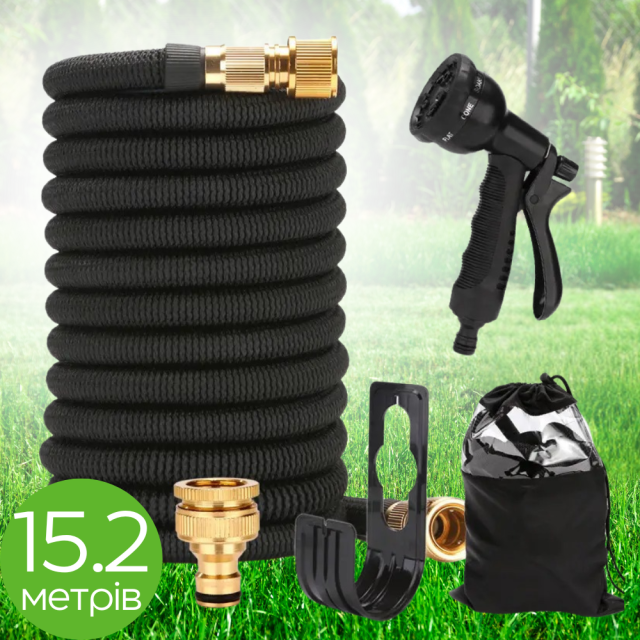 Шланг садовый для полива 15.2 м набор для полива с распылителем, гибкий, растягивающийся, для сада и огорода