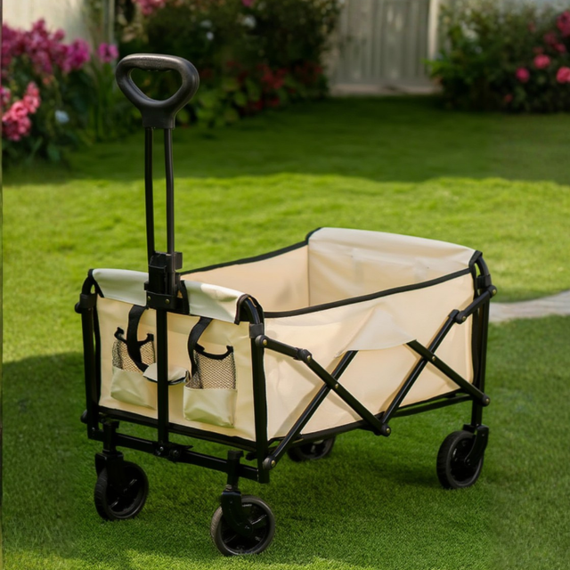 Практичная складная тележка для кемпинга, дачи, пикников, рынка и перевозки вещей. Конструкция выполнена на прочном железном каркасе с усиленными трубами и плотной двойной тканью Oxford 600D. Тележка легко складывается для хранения и транспортировки.