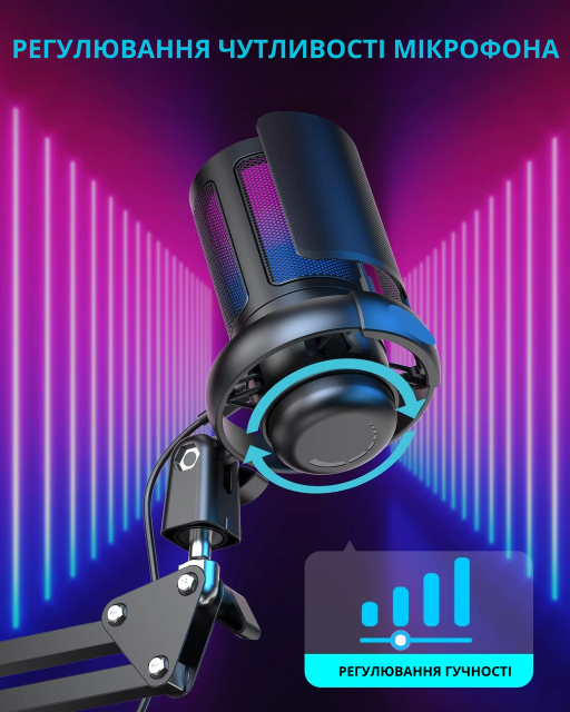 Встроенное шумоподавление Noise Cancelling эффективно уменьшает окружающие звуки, что особенно важно при работе в шумной среде. Микрофон подключается через USB-интерфейс, не требует драйверов и совместим с ПК, ноутбуками и игровыми консолями. RGB-подсветка создаёт стильный игровой эффект и делает сетап более выразительным.