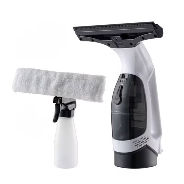 Устройство оснащено встроенным резервуаром для грязной воды и мягким силиконовым скребком, который эффективно собирает влагу со стекла. В комплект входит распылитель с насадкой из микрофибры, позволяющий равномерно наносить чистящее средство и удалять загрязнения перед обработкой стеклоочистителем.