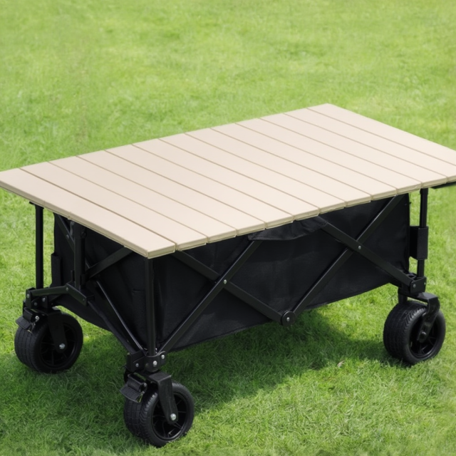 Усиленная складная тележка Gathering Tank Wheel со столешницей — надежное и универсальное решение для кемпинга, дачи, пикников, рынка и перевозки объемных и тяжелых грузов. Прочная конструкция на железном каркасе в сочетании с износостойкой тканью Oxford обеспечивает долговечность, устойчивость и высокую надежность при эксплуатации. Вместительный внутренний отсек позволяет удобно размещать продукты, туристическое снаряжение, инструменты и хозяйственные принадлежности.