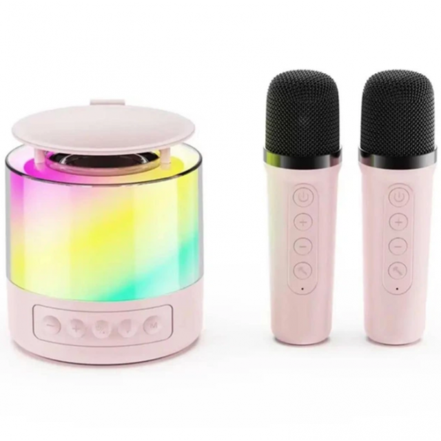 Портативная колонка K19 Bluetooth с LED-подсветкой и 2 микрофонами, караоке Розовая