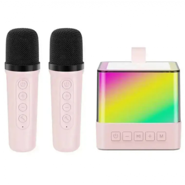 Портативная колонка K18 – универсальный музыкальный центр для дома, улицы и вечеринок. Оборудована двумя беспроводными микрофонами, поддержкой Bluetooth 5.1, LED подсветкой RGB и мощностью 10 Вт. Идеально подходит для караоке, прогулок, пикников и активного отдыха.Достоинства:· Два беспроводных микрофона для дуэтного исполнения· Поддержка Bluetooth 5.1 и стабильная связь на расстоянии до 10 м· Яркая RGB LED-подсветка для атмосферы праздника· Компактный и легкий корпус – удобно брать с собой· Аккумуляторы: колонка 2000 мАч, микрофоны 800 мАч, до 8 часов работы· Многофункциональное воспроизведение: USB, TF-карта, AUX, FM-радио· Быстрая зарядка через Type-CХарактеристики:· Мощность: 10 Вт· Частотный диапазон: 82–20000 Гц· Время работы: до 8 часов· Время зарядки: 2-3 часа· Размеры: 9×7×9 см, вес 200 г· Цвет: розовыйКомплектация· Bluetooth колонка K18· 2 микрофона· Кабель для зарядки· Упаковка