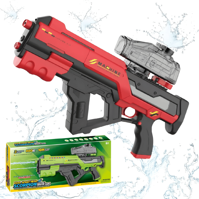 Водный пистолет для детей, электрический водный автомат Скорпион детский с автоматической закачкой воды, красный
