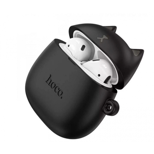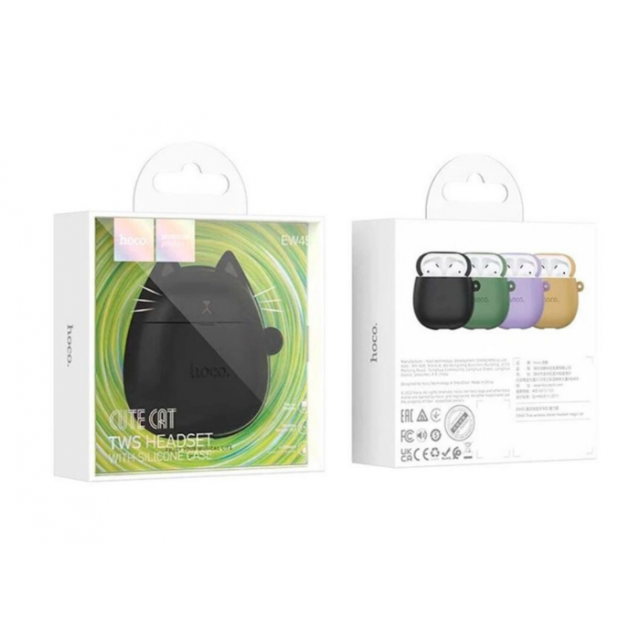 Беспроводные наушники вкладыши в кейсе HOCO EW45 + силиконовый кейс Кот Черный