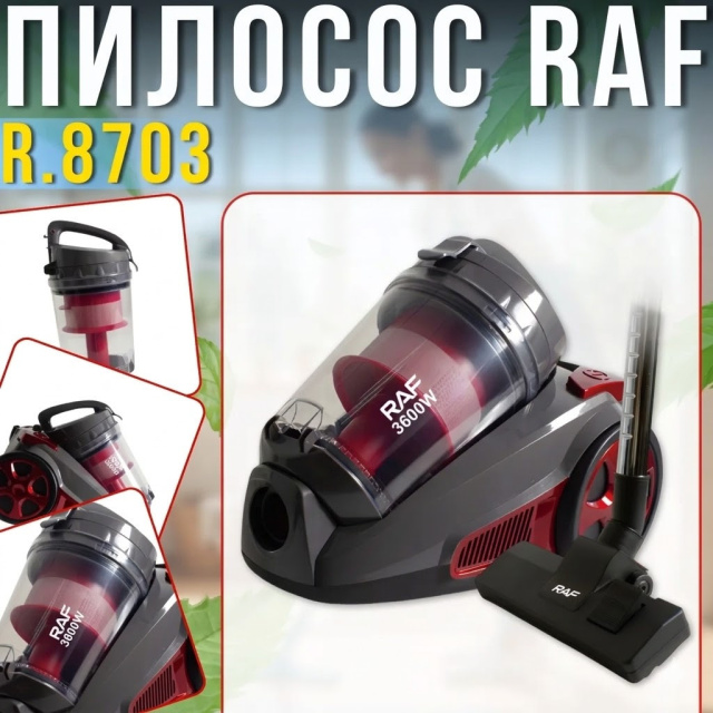 Пылесос RAF R.8703 предназначен для эффективной сухой уборки жилых помещений. Модель оснащена циклонной технологией без использования мешка, что обеспечивает стабильную мощность всасывания и упрощает обслуживание. Контейнер объемом 3 литра позволяет убирать большие площади без частой очистки, а пластиковый корпус устойчив к ежедневной эксплуатации.