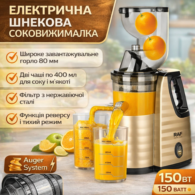 Электрическая соковыжималка с контейнерами для сока и мякоти по 400мл RAF R.2838 150W