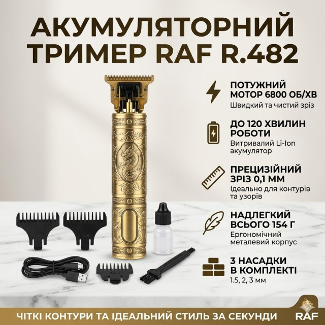Аккумуляторный триммер для стрижки бороды и усов RAF R.482 3 насадки