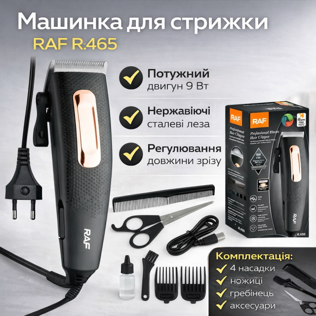 Проводная машинка для стрижки волос RAF R465 Машинка для стрижки и окантовки бороды
