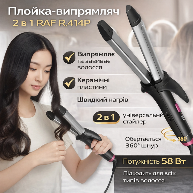 Плойка-выпрямитель 2в1 для выпрямления и завивки волос RAF R.414P 58W