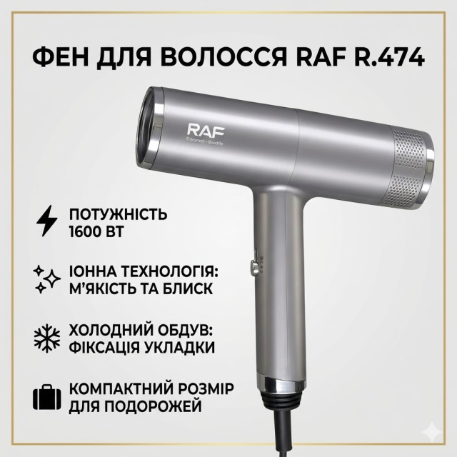 Фен для волос с ионизацией на 2 скорости и 3 температурных режима RAF R.474 1600Вт